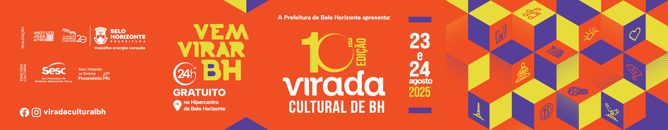 Realizada pela Prefeitura de Belo Horizonte, por meio da Secretaria Municipal de Cultura e da Fundação Municipal de Cultura, em parceria com o Instituto João Ayres, a edição comemorativa promete reunir uma ampla variedade de expressões artísticas, ocupando praças, ruas, viadutos e equipamentos culturais do hipercentro.