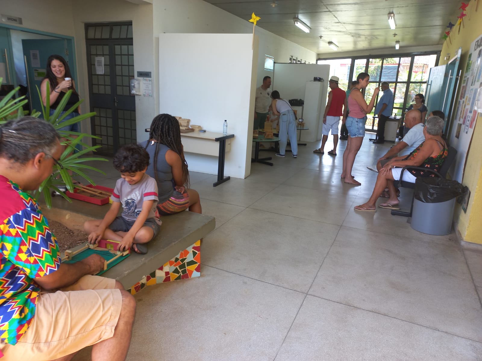 Os encontros se concentram no ato de brincar, possibilitando aos participantes momentos lúdicos de interação social e contato com a cultura da infância.