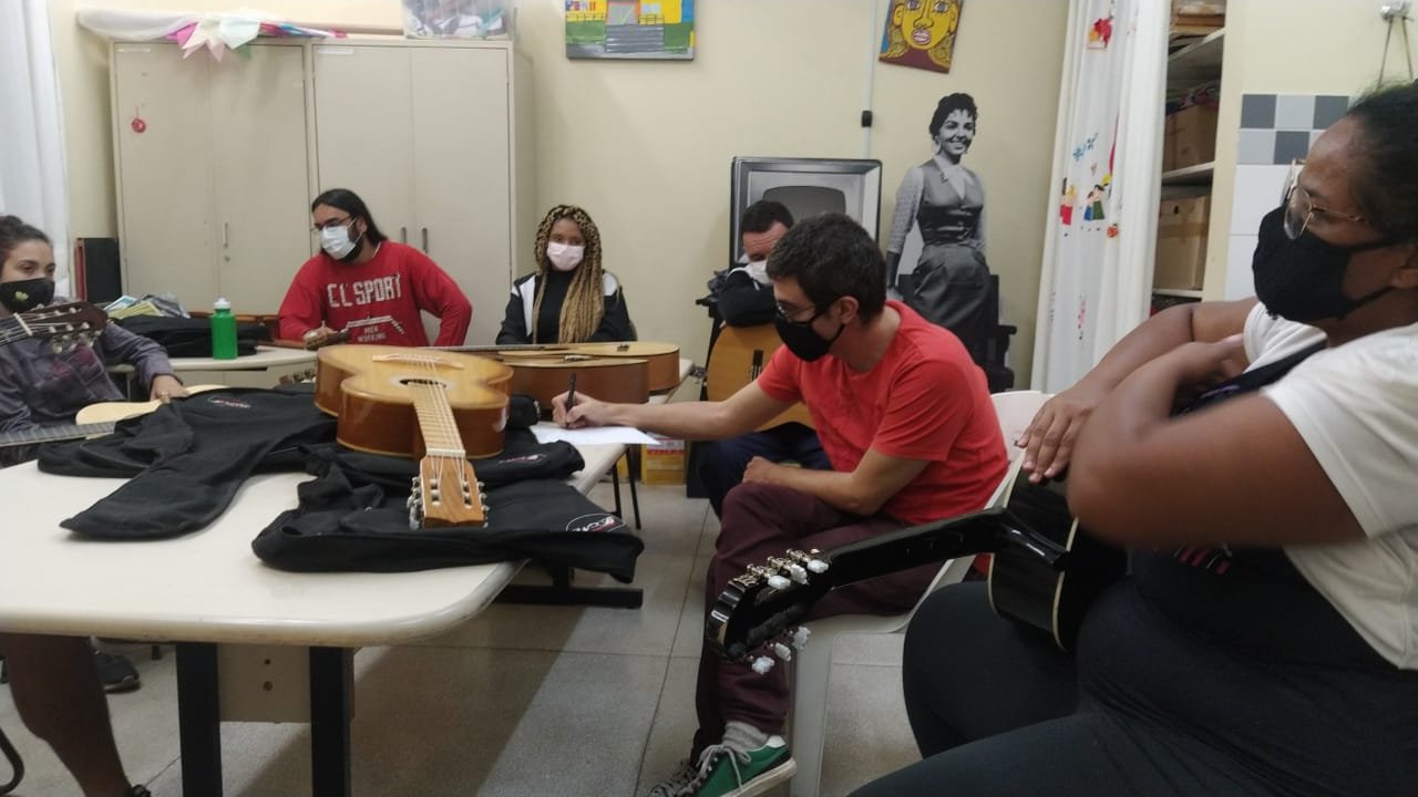 Atividade de iniciação ao estudo do violão. Pretende promover o conhecimento das características do instrumento e sua prática dentro do contexto da música brasileira.