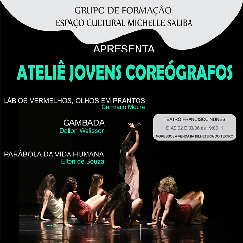 O Teatro Francisco Nunes recebe o espetáculo de Dança: Ateliê De Jovens Coreógrafos.