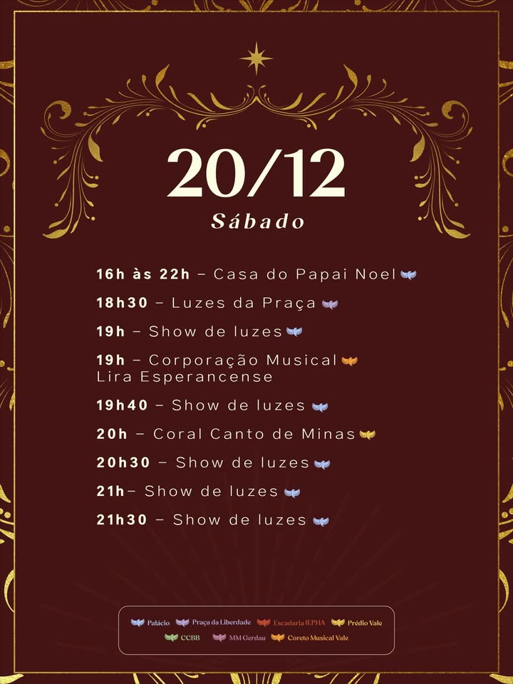 O Coral Cantos de Minas realiza uma apresentação especial no Natal da Mineiridade, reunindo artistas, corais e bailarinos em um espetáculo que celebra a música coral, a identidade cultural mineira e o espírito natalino. Reconhecido por sua proposta de alta performance cênico-musical, o grupo integra canto coral, música instrumental, dança, teatro e elementos cênicos em apresentações marcadas pela diversidade artística e pelo diálogo com o público.