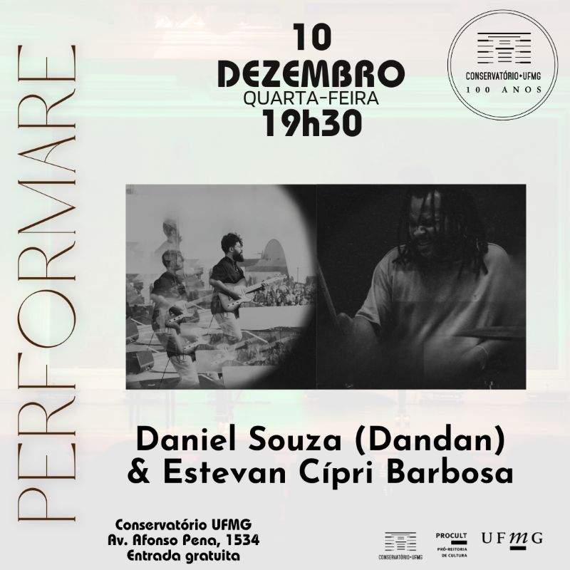 Conservatório UFMG apresenta o show do guitarrista e compositor Daniel Souza (Dandan) e do baterista e compositor Estevan Cípri no dia 10 de dezembro, quarta-feira, às 19h30. A apresentação, com entrada gratuita, celebra a parceria musical construída ao longo de muitos anos de convivência, experiências e amadurecimento. Mais do que um marco acadêmico, o concerto reflete uma trajetória compartilhada de amizade, experimentação e escuta mútua.