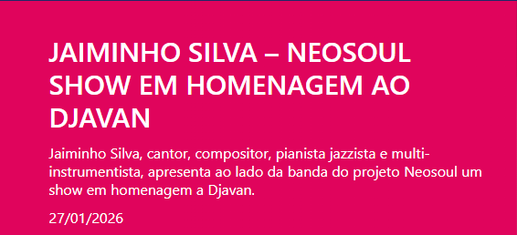 Jaiminho Silva, cantor, compositor, pianista jazzista e multi-instrumentista, apresenta ao lado da banda do projeto Neosoul um show em homenagem a Djavan, interpretando algumas de suas canções mais marcantes.