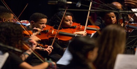 Com regência de Rodrigo Garcia o repertório promete uma experiência única, mesclando arranjos orquestrais com a força expressiva da cultura urbana. Além da turma de Aprofundamento, se apresentam na noite, as demais turmas de Orquestra, que hoje totaliza 155 alunos.