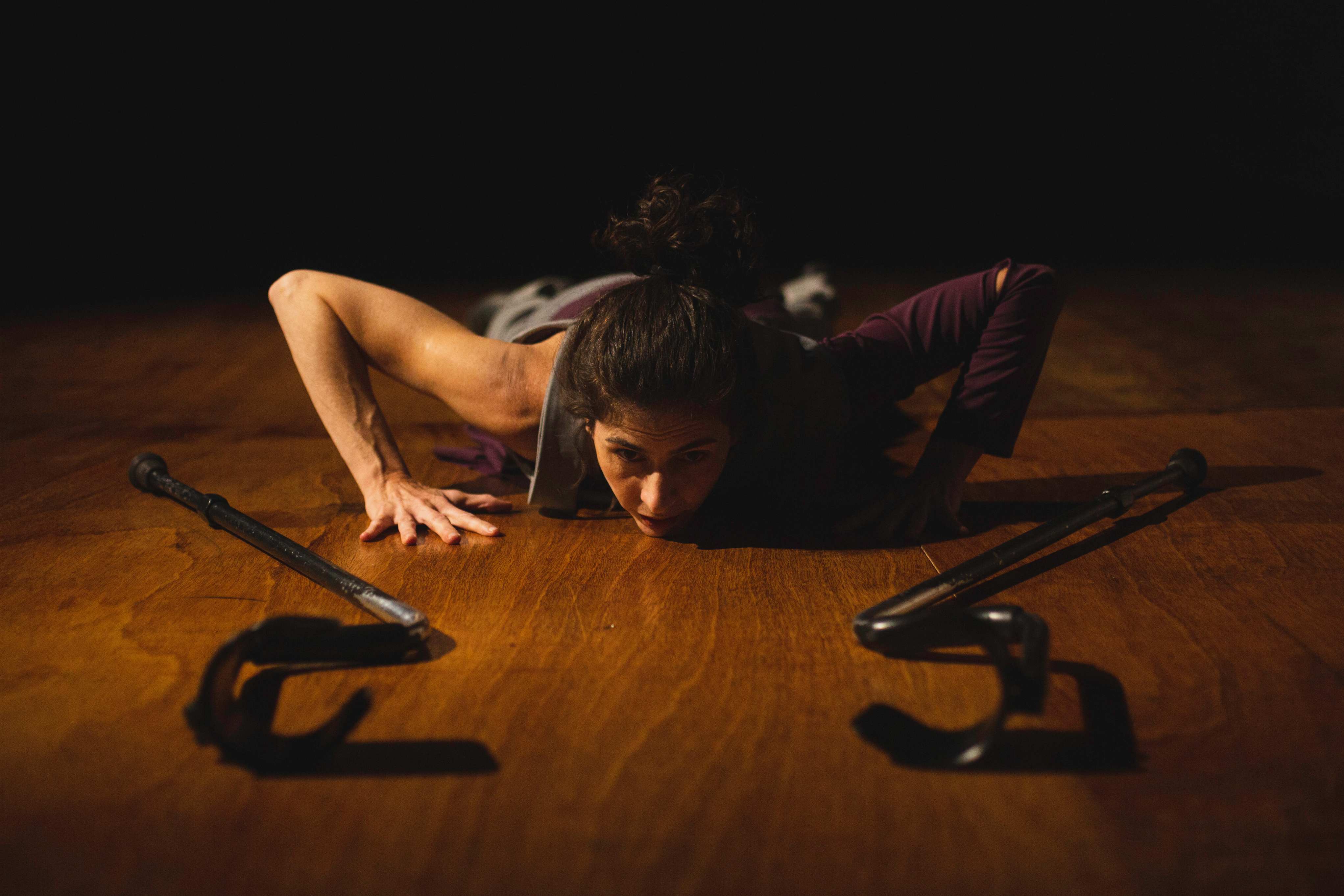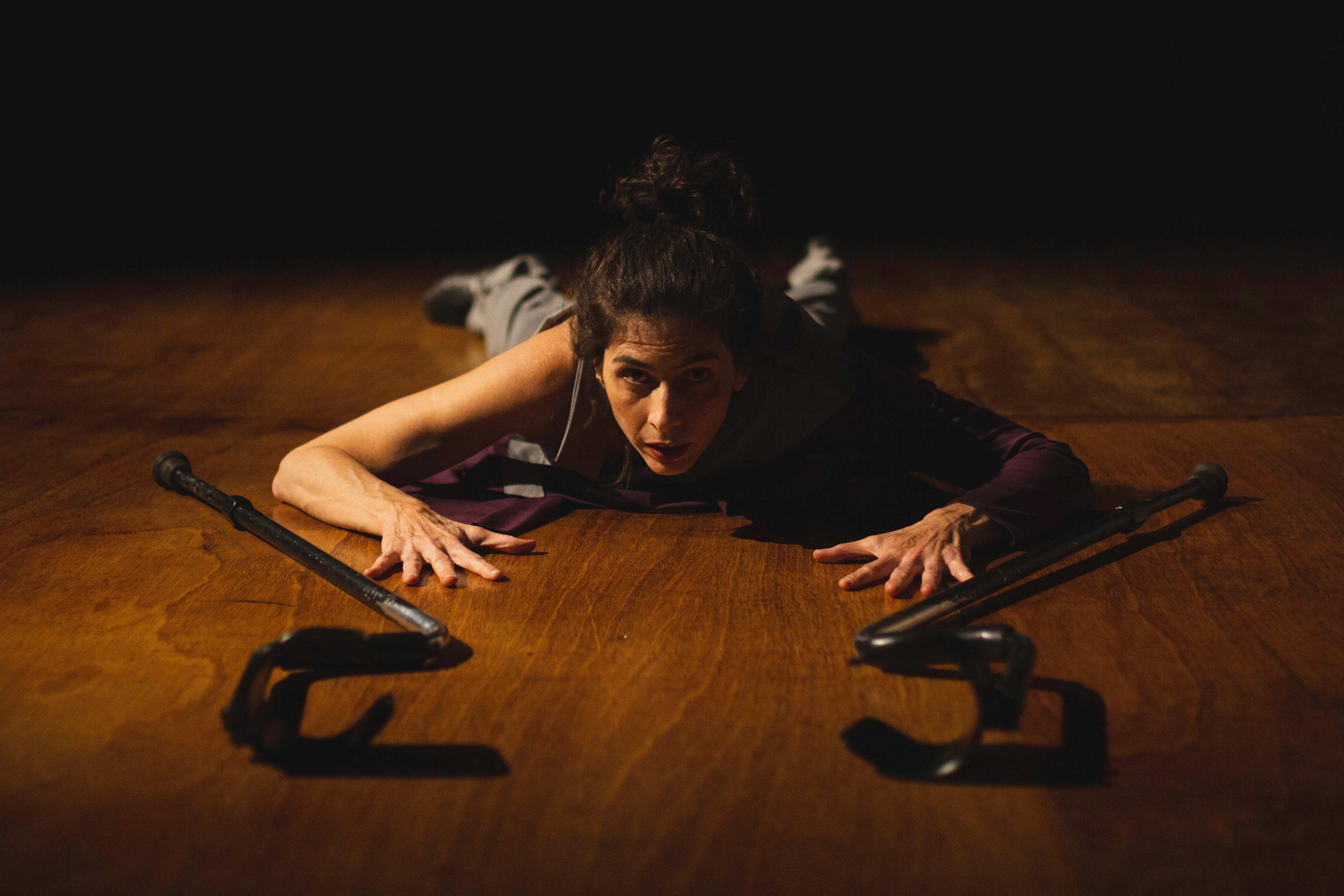 A ideia é confundir e, ao mesmo tempo, provocar o público sobre corpos marcados e não marcados pelo uso de muletas, em movimentos que se misturam, separam, se desfazem e refazem. As muletas ficam dispostas no palco e compõem a dança, também como um convite para outro olhar estético e artístico para esse objeto e suas diversas possibilidades de sentido.