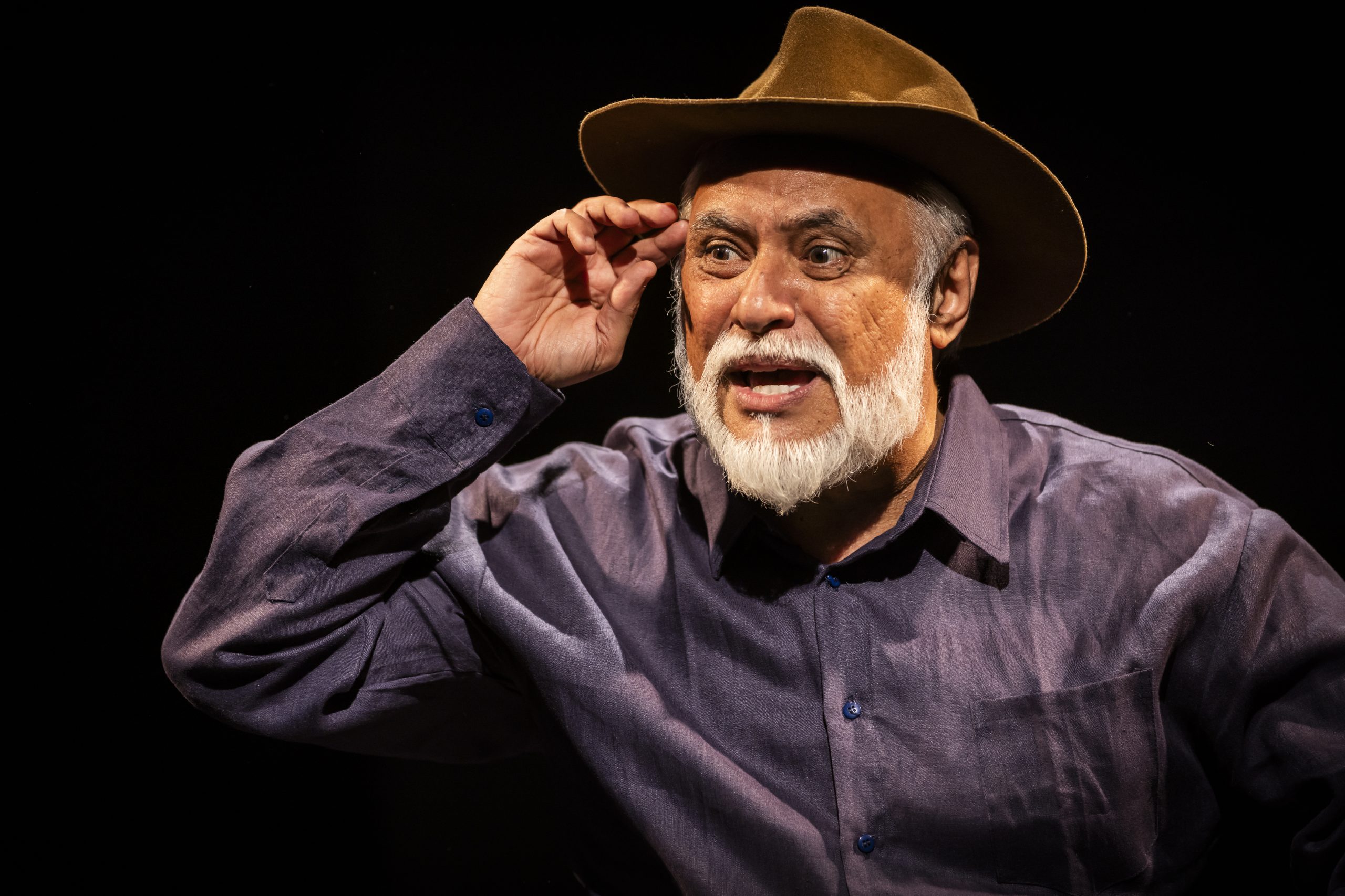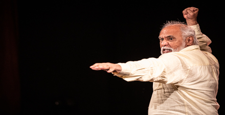 Riobaldo, um ex-jagunço, hoje um velho fazendeiro, conversa com um interlocutor (o público). Nesse encontro, cheio de filosofia, ele conta passagens de sua vida e reflete sobre a dialética: bem e mal, Deus/diabo.