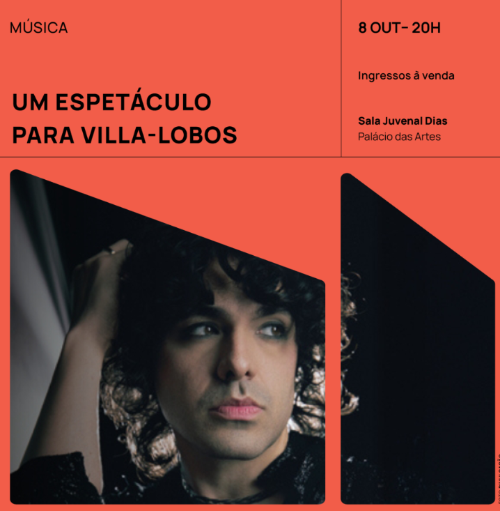 Na quarta-feira, dia 8 de outubro, às 20h, ele sobe ao palco da Sala Juvenal Dias, no Palácio das Artes, com o recital “Um Espetáculo para Villa-Lobos”, em um recital voz e piano, com um repertório que faz um tributo ao ícone maior da música erudita brasileira, Heitor Villa-Lobos, revisitando diferentes ciclos de sua obra.