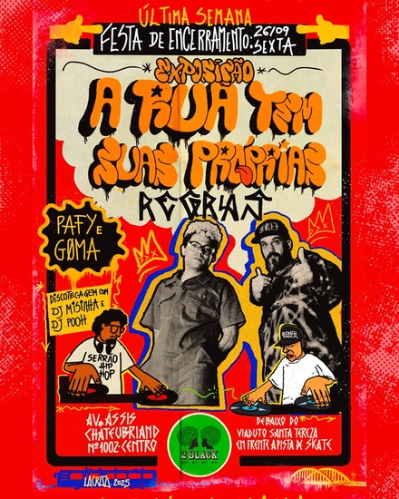A festa de encerramento contará com a presença dos DJs Misinha e Pooh, nomes reconhecidos na cena musical da cidade. O evento é aberto ao público e convida a comunidade a celebrar a arte que pulsa do concreto.