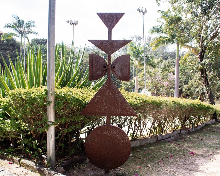 Esta intervenção poderia estar instalada em várias cidades brasileiras, pois os utensílios em ferro abrem um diálogo, resgatando histórias silenciadas, como a contribuição do homem e da mulher negra na construção da história do país. A enxada se caracteriza como um discurso híbrido e polissêmico, como “provedora de vida” e sentido, com inúmeras possibilidades de interpretação no contexto da arte contemporânea. O objeto enxada, como referência, não evidencia apenas a dimensão religiosa, abarca um entendimento mítico, ideológico, estético e político, indo além do senso comum da ferramenta da exploração do trabalho, representando uma libertação imagética e simbólica. Os objetos nascidos de uma cosmopercepção dialogam com a natureza e o ecossistema do parque, sobretudo com transeuntes, em seu aspecto amplo: cultural, social e ecológico, de certo, soa como uma voz dissonante e poética, como uma cantoria de preto contra uma opressão que necessita cada vez mais ser combatida a ferro e fogo, diluída sob o calor das massas.