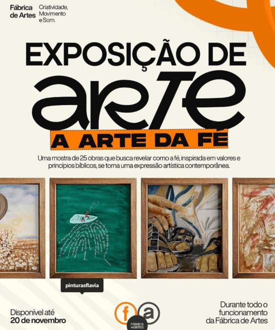 A Fábrica de Artes, em parceria com os artistas Flávia Barsanulfo e Edlima, apresenta uma mostra que revela como a fé cristã, inspirada em valores e princípios bíblicos, pode se transformar em expressão artística contemporânea.