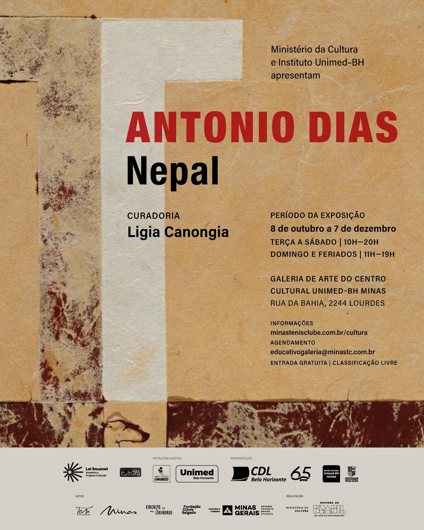 A curadoria da crítica de arte Ligia Canongia concentra o foco da exposição nos papéis artesanais realizados pelo artista no Nepal, de 1977 a 1987, de forma a enfatizar um segmento da obra inédito em Minas Gerais, e um recorte da produção com identidade própria e ressonâncias posteriores no próprio desenvolvimento do trabalho do artista. “Antonio Dias – Nepal” compreende a apresentação de 20 obras, uma grande instalação e uma sala documental, com textos, objetos pessoais, publicações, vídeos e rica exibição de material da época.