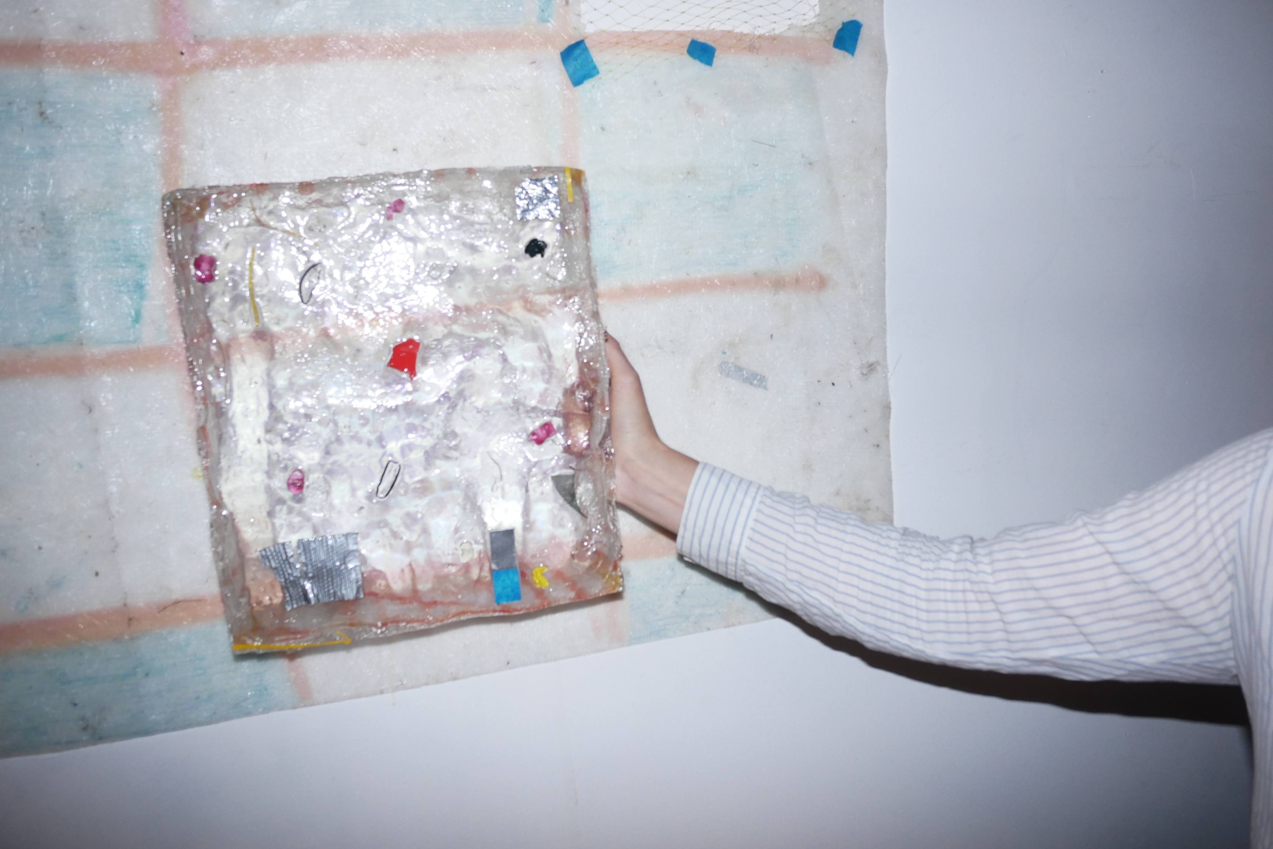 Entre pinturas, objetos e uma escultura, Quarks revela uma fase mais tridimensional da artista, com trabalhos que se relacionam diretamente com o espaço expositivo.