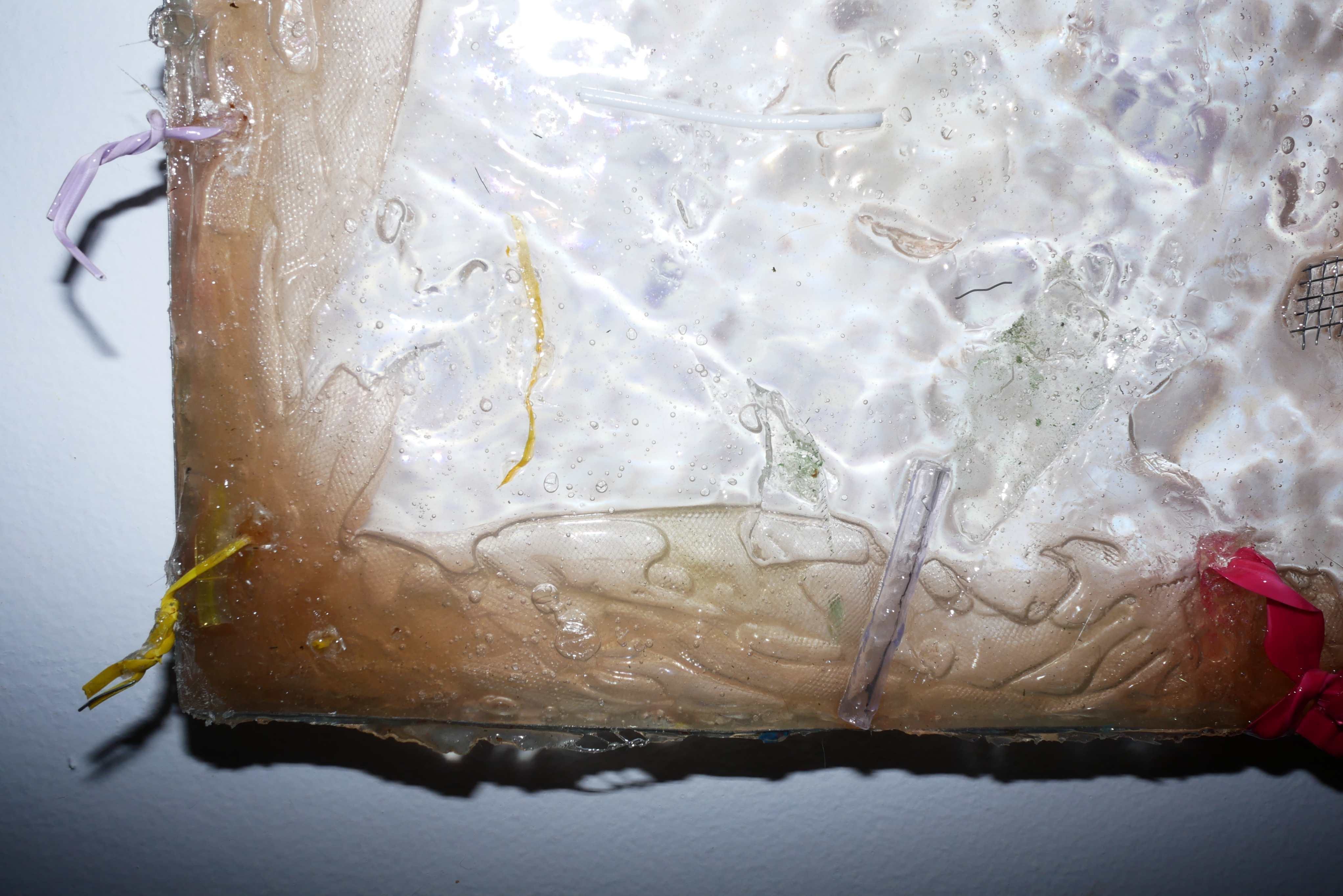 Todos os trabalhos apresentados em Quarks são inéditos, desenvolvidos ao longo dos últimos meses em um processo intenso que mistura diferentes materiais, como tecidos, arames, metais, cordas, resina e outros elementos encontrados.