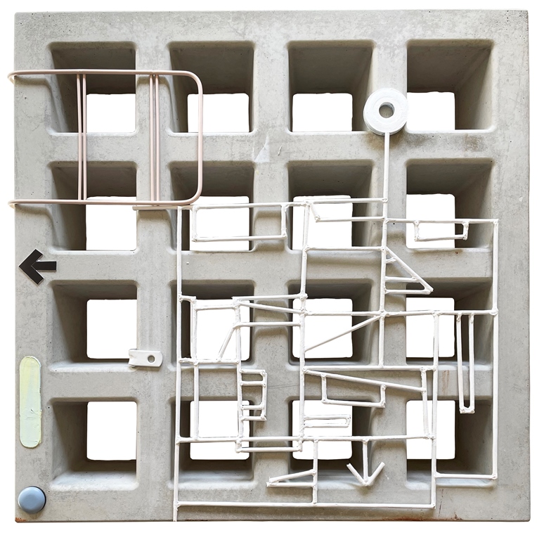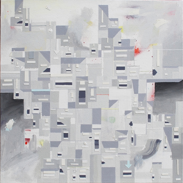 A mostra reúne pinturas que exploram arquétipos da figura humana e da arquitetura, representadas como estruturas geométricas entrelaçadas em um aglomerado de formas, aludindo à vida na cidade caótica.