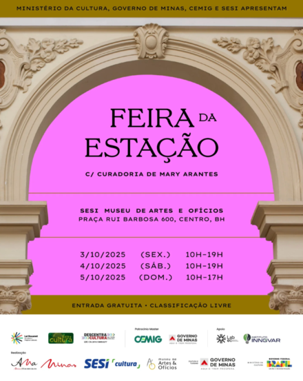 A Feira da Estação reúne cerca de 70 expositores com foco nos saberes manuais e na economia criativa, nos dias 3, 4 e 5 de outubro, com entrada gratuita. O SESI Museu de Artes e Ofícios segue celebrando seus 20 anos de história com um evento inédito: a Feira da Estação. A iniciativa ocupa, pela primeira vez, todos os espaços do prédio principal do museu, localizado nas antigas Estações Ferroviárias da capital mineira, na Praça da Estação, entre os dias 3 e 5 de outubro. Em parceria e com curadoria de Mary Arantes, a feira reunirá cerca de 70 expositores e designers que trabalham com cerâmica, bordado, obras têxteis, marcenaria e diversos outros materiais e técnicas artesanais. Mais que uma mostra de produtos autorais, a Feira da Estação é um convite à imersão nos saberes manuais e nos ofícios tradicionais que moldaram a identidade cultural do Brasil e que compõem a essência do próprio museu.