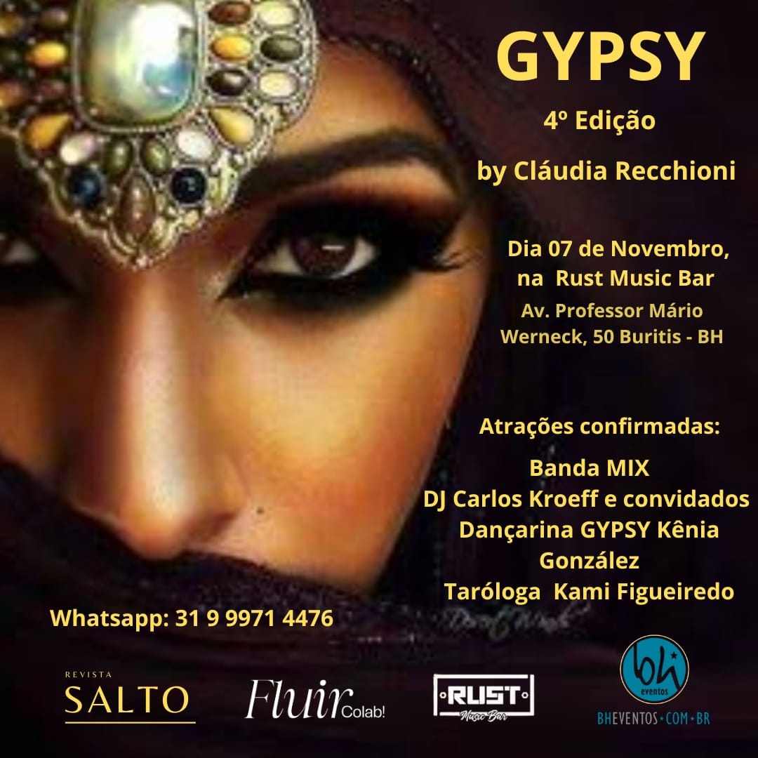 No dia 7 de novembro (sexta- feira), o RUST Music Bar, no bairro Buritis, será o cenário da 4ª edição da GYPSY – Noite Cigana, festa criada pela produtora Cláudia Recchioni, que há anos movimenta a vida noturna da cidade com eventos temáticos voltados para um público maduro e cheio de energia. Com início às 21h e pista acesa até 3h da manhã, a GYPSY é mais que uma festa — é uma celebração sensorial que convida os participantes a mergulharem em um universo de ritmos, danças e experiências místicas. Inspirada na liberdade e na intensidade do espírito cigano, a festa combina música, performance e simbologia em um ambiente pensado nos mínimos detalhes para despertar os sentidos e celebrar a vida.