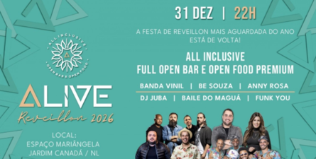 A Festa Réveillon Alive oferece um buffet completo e música ao vivo durante toda a noite, proporcionando aos convidados uma celebração animada e inesquecível para a chegada de 2026.