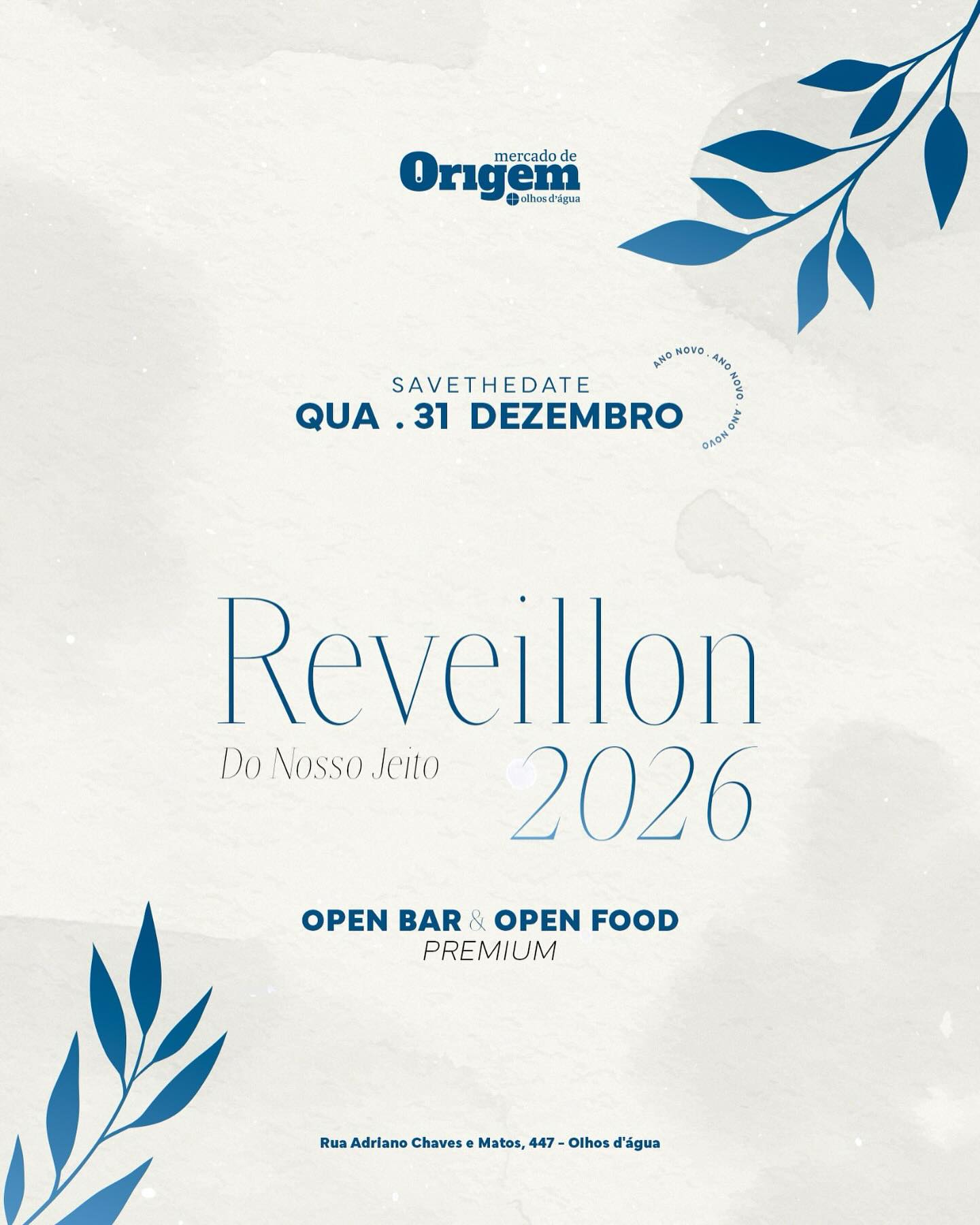 Réveillon Mercado de Origem - Do Nosso Jeito – está confirmado para 31 de dezembro. Será uma versão especial do projeto que é um sucesso na casa, liderado pelos anfitriões Rick & Nogueira, com o melhor do sertanejo. Além deles, a banda Marejha, com o melhor repertório estilo baile, e Dj JLove comanda os intervalos.