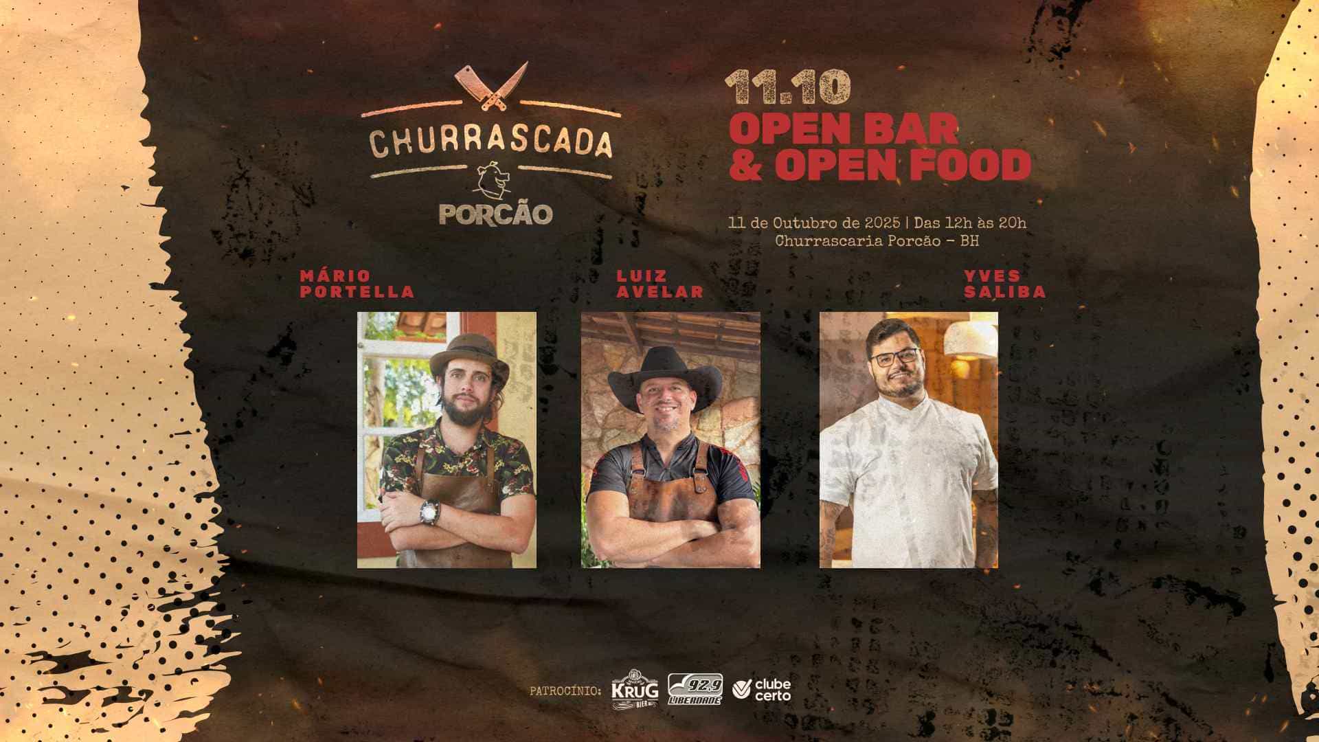 Com uma vista privilegiada da capital mineira, a Churrascada reúne o melhor da culinária e da cultura em um ambiente rústico e acolhedor. O público poderá desfrutar de 10 estações gastronômicas em formato open food, com cortes selecionados e preparo assinado por grandes chefs, entre eles Mário Portella, Yves Saliba e Luiz Avelar, que apresentarão diferentes estilos de preparo, do fogo de chão ao American Barbecue. Além disso, o evento oferece open bar com chopp Krug, Gin Porcão, sucos e refrigerantes, com outras bebidas disponíveis para compra à parte.