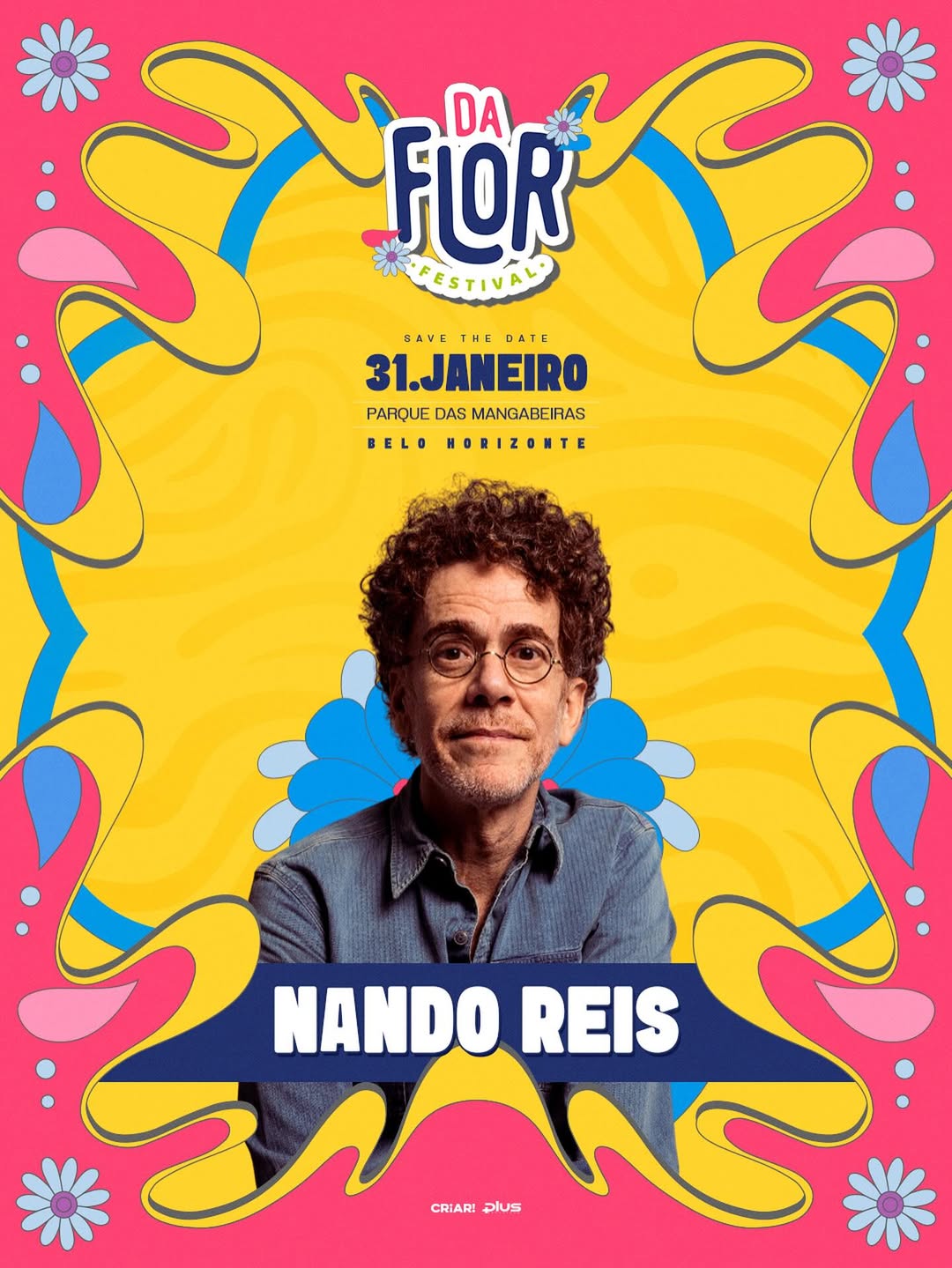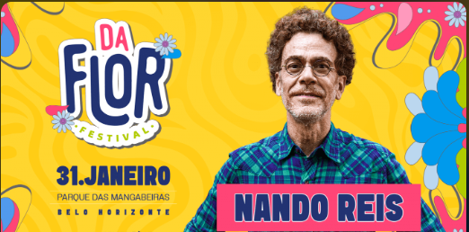O festival da Flor fecha o mês de janeiro no Parque das Mangabeiras. Nando Reis confirmou sua presença no evento que toma conta de BH dia 31 de janeiro, sábado, a partir de meio dia. As vendas começam no dia 05/11/25 com o lote promocional sem taxa. No palco, não para no Nando Reis, a programação vai sendo atualizada ao longo do tempo com muito mais atrações e vocês não perdem por esperar. Haverá espaço gastronômico, chopes artesanais e espaço kids.