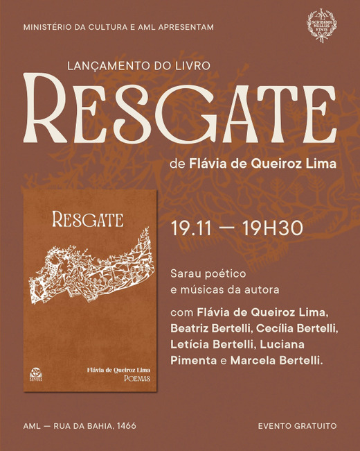 A Academia Mineira de Letras recebe no dia 19 de novembro, às 19h30, o lançamento do livro “Resgate”, de Flávia de Queiroz Lima, uma celebração dos 80 anos da autora que reúne poesia, afeto e memória. A noite será marcada por um sarau poético conduzido por suas filhas e netas, Beatriz, Cecília, Letícia e Marcela Bertelli, junto da ensaísta e pesquisadora Luciana Pimenta, em leituras de poemas, cartas e canções compostas por Flávia desde a década de 1960.