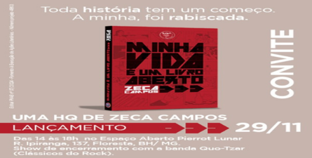 Em “Minha vida é um livro aberto”, os desenhos/ilustrações de Zeca Campos mostram seu desenvolvimento como artista ao longo dos anos.