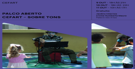 Tendo isso em mente, as atividades se dividem entre os dias 9 de outubro, das 18h às 21h; 10 de outubro, das 18h às 22h, integrando o “Palco Aberto Cefart – Sobre Tons”; e 11 de outubro, das 10 às 17h, com o “Palco Aberto Cefart – Sobre Tons – Dia do Pequeno Artista”. Todas as atividades são gratuitas.