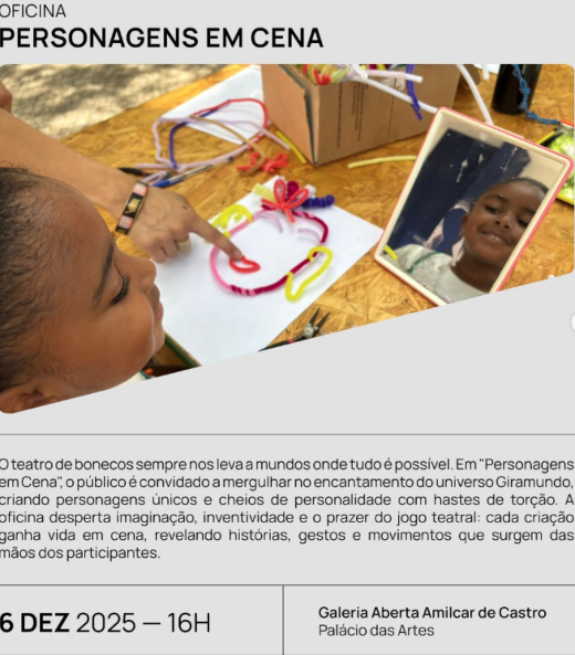 A oficina acontecerá no dia 6 de dezembro de 2025, às 16h, na Galeria Aberta Amílcar de Castro, no Palácio das Artes, em Belo Horizonte, oferecendo um espaço acolhedor para que a infância seja celebrada em toda a sua potência criadora.