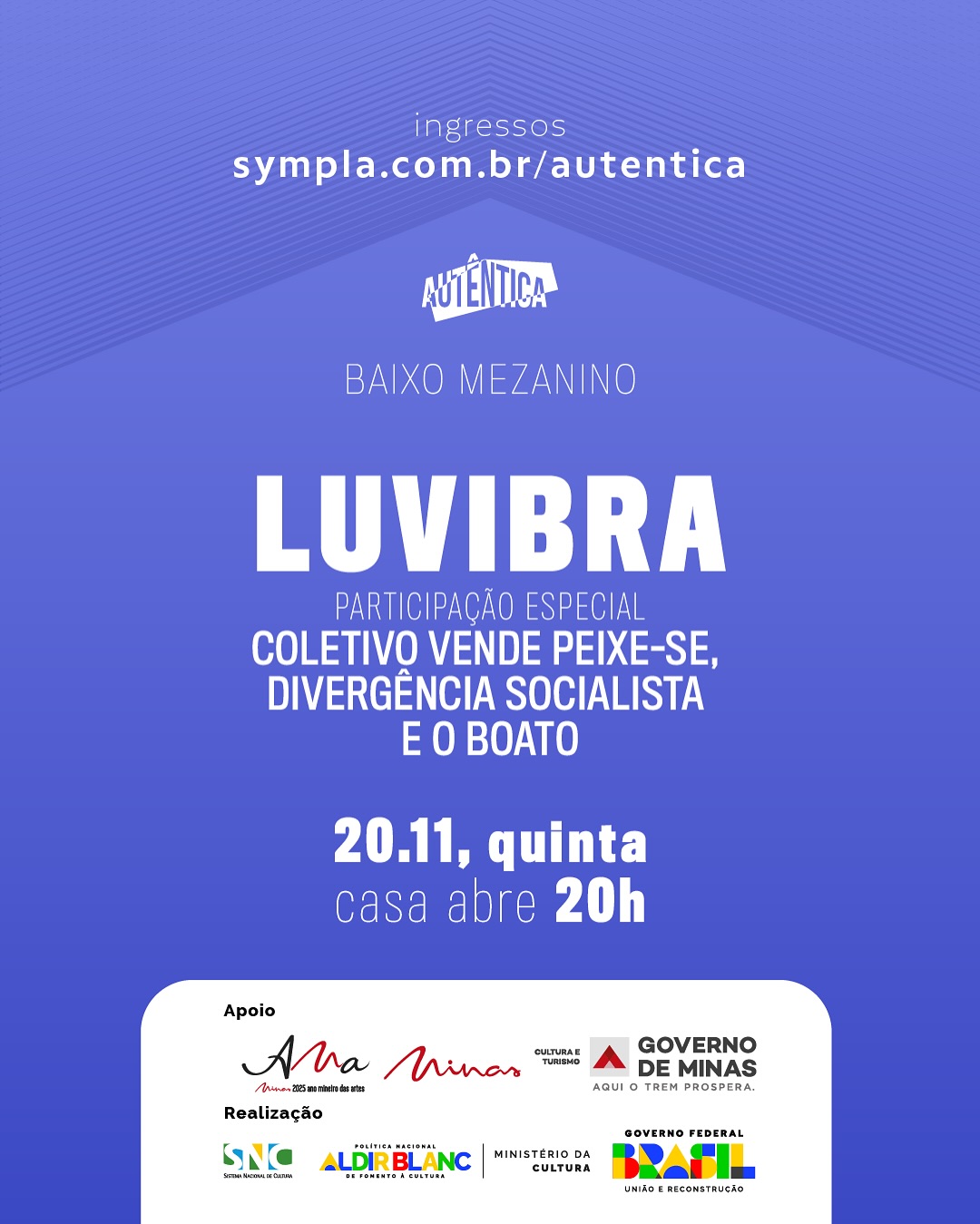 No dia 20 de novembro, o Baixo Mezanino da A Autêntica será tomado por uma celebração rara: o LUVIBRA lança seu primeiro single, “Cê Tenta”, canção que transforma o verbo setentar em verbo viver. A faixa é uma parceria entre Lúcia Vieira Braga e Cesco Napoli, fruto do projeto “Seu Single na Inconfidência”, contemplado pelo Plano Nacional Aldir Blanc – Estado de Minas Gerais.