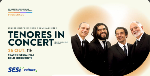 Árias e canções eruditas compõem um patrimônio cultural capaz de atravessar fronteiras imaginárias e cativar um público amplo e diverso com leveza e qualidade técnica. Sinopse: Marcando o encerramento da Série Promenade 2025, a Orquestra Sesminas reencontra o grupo Tenores in Concert, em um concerto repleto de emoções.