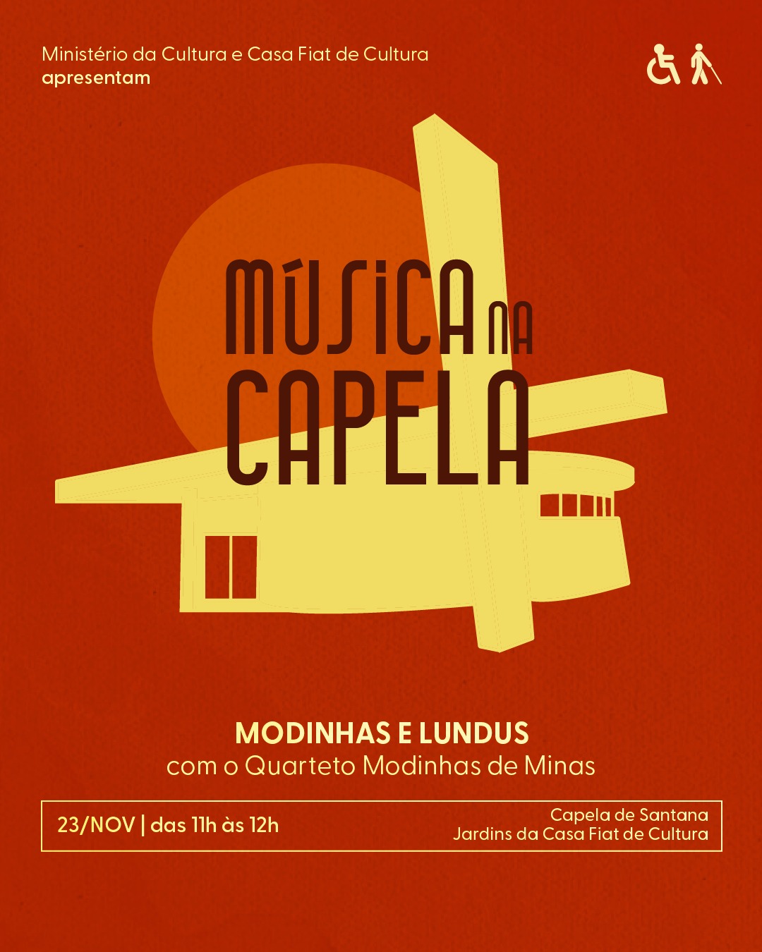 A apresentação é gratuita e acontece na Capela de Santana, nos jardins da Casa Fiat de Cultura. Espaço sujeito à lotação.