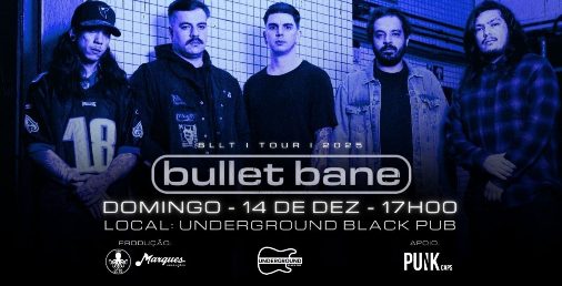 O Underground Black Pub recebe, no dia 14 de dezembro (domingo), a partir das 17h, a banda BULLET BANE, em mais um show da sua nova turnê pelo Brasil.