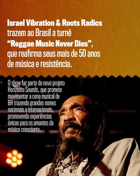 Após passar pela Europa, Estados Unidos e outros países da América do Sul, o lendário Israel Vibration & Roots Radics desembarca em BH no dia 27 de novembro (quinta-feira) na Autêntica, trazendo a verdadeira essência do reggae roots jamaicano!