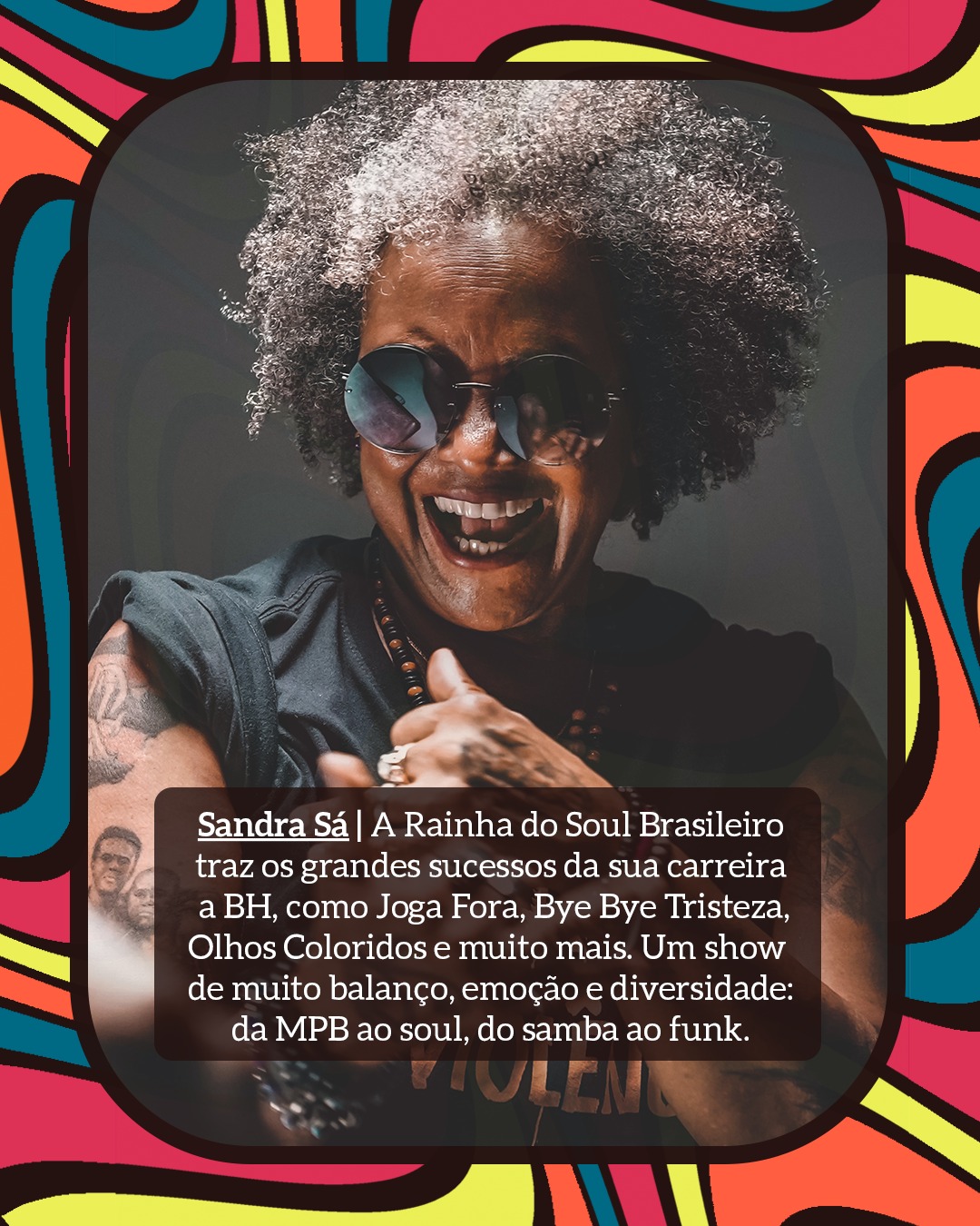 No dia 04 de outubro, sábado, às 20h, ela chega com sua voz poderosa e presença icônica: Sandra de Sá, um verdadeiro patrimônio da música brasileira.