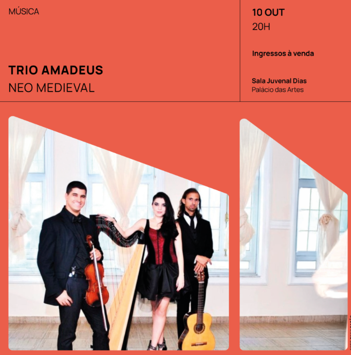 O Trio Amadeus convida o público para uma noite especial e emocionante com o show "Trio Amadeus Neo Medieval", que será apresentado no dia 24 de outubro, na acolhedora Sala Juvenal Dias, do Palácio das Artes.