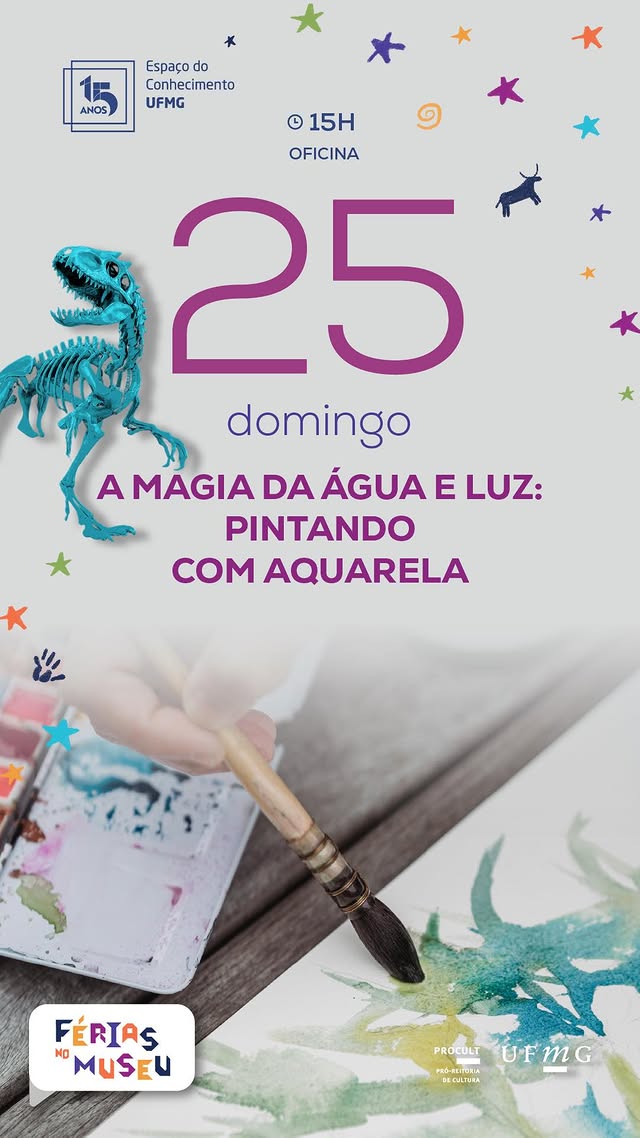 Durante o período de férias, o Espaço do Conhecimento UFMG convida o público a viver experiências que unem arte, ciência e sensibilidade, como a oficina A Magia da Água e Luz: Pintando com Aquarela. A atividade propõe uma imersão criativa nos fundamentos da aquarela, explorando cores, transparências e o movimento da água de forma acessível e envolvente, permitindo que crianças a partir de cinco anos, jovens, adultos e idosos descubvam novas formas de expressão sem a necessidade de conhecimento prévio. Em um ambiente acolhedor e inspirador, o museu se transforma em um espaço onde aprender e criar caminham juntos, despertando a curiosidade e a imaginação.