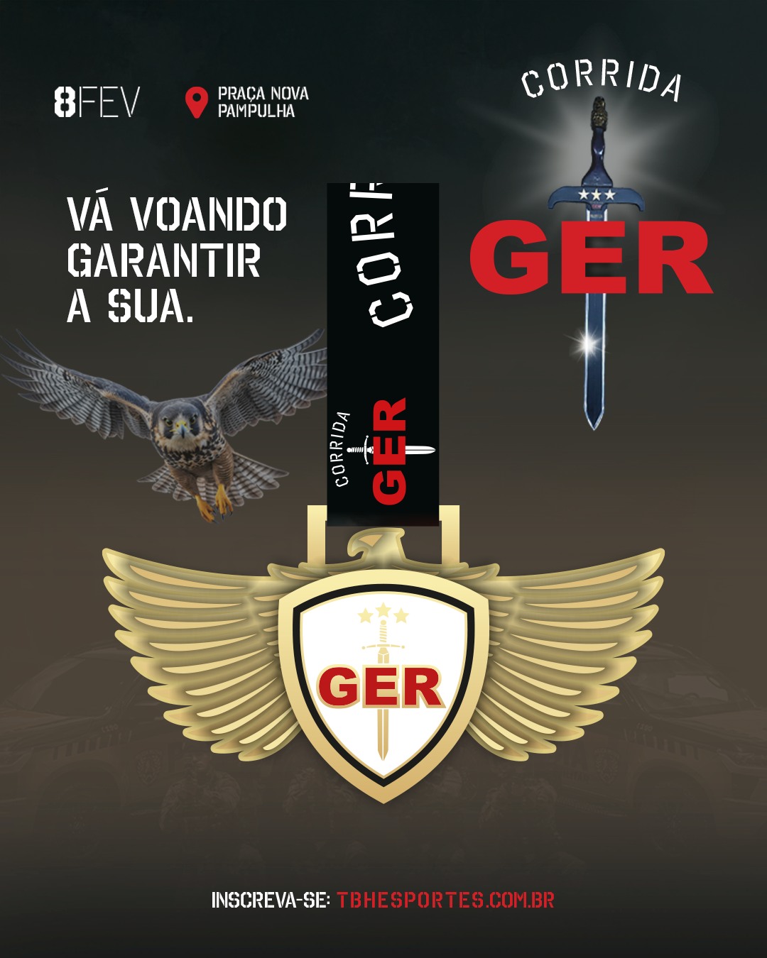 Apresentamos a medalha da Corrida do GER! Um design exclusivo, com traços que remetem à imponência dos Falcões de Minas, símbolo de honra, força e precisão.