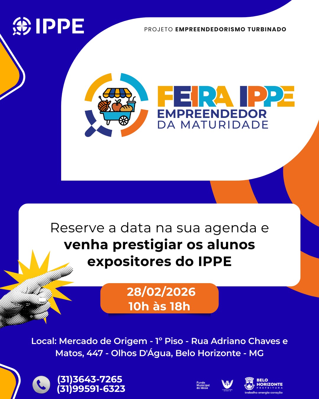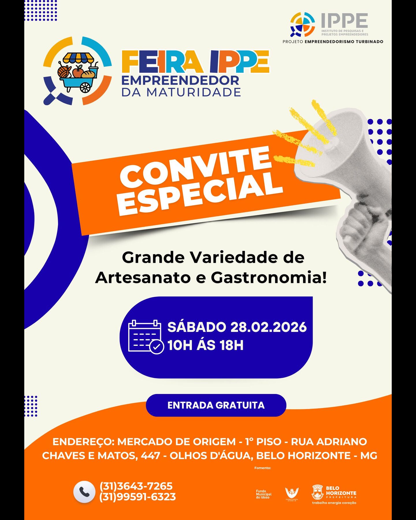 No dia 28 de fevereiro, das 10h às 18h, o Mercado de Origem Olhos d’Água será palco da Feira do Empreendedor da Maturidade, evento que valoriza o talento, a experiência e a capacidade produtiva de pessoas com mais de 50 e 60 anos. Idealizada pelo Instituto IPPE, a iniciativa tem como propósito combater o etarismo por meio da inclusão produtiva, incentivando profissionais maduros a transformarem sua trajetória e conhecimento em negócios sustentáveis. A participação é gratuita para os alunos do instituto e o evento é aberto ao público.