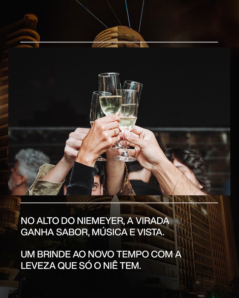 Do alto do memorável prédio do Niemeyer onde está localizado o Niê, você é convidado para o réveillon do nosso terraço, em uma noite intimista e divertida, para celebrar o ano que entra e o ano que passou da melhor forma.