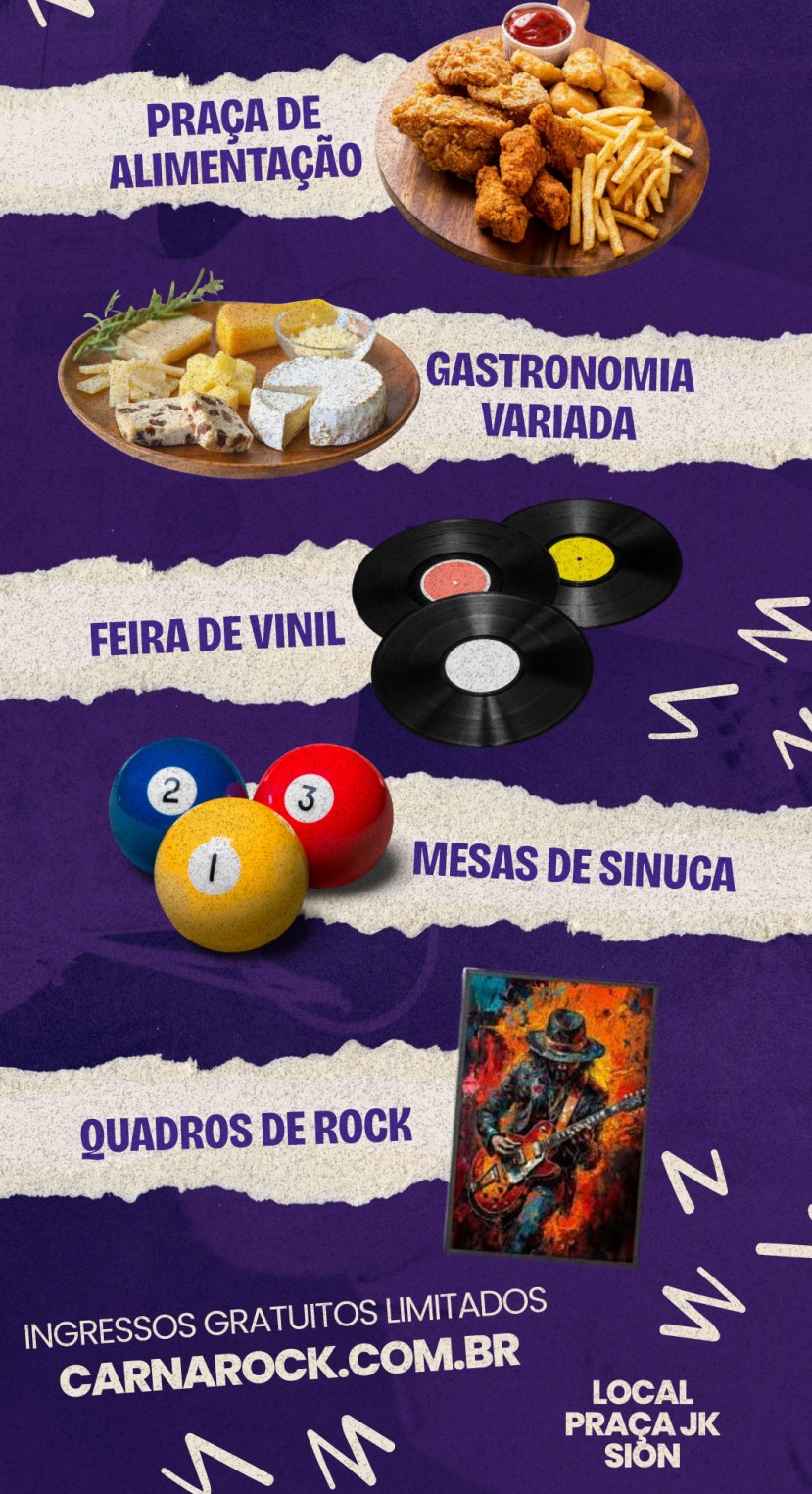 O Carna Rock 2026 chega para provar que o carnaval também pode ser vivido ao som de guitarras, atitude e muita energia. No dia 07 de fevereiro, a partir das 14h, a Praça JK se transforma em ponto de encontro para quem gosta de rock e quer curtir a folia de um jeito diferente.