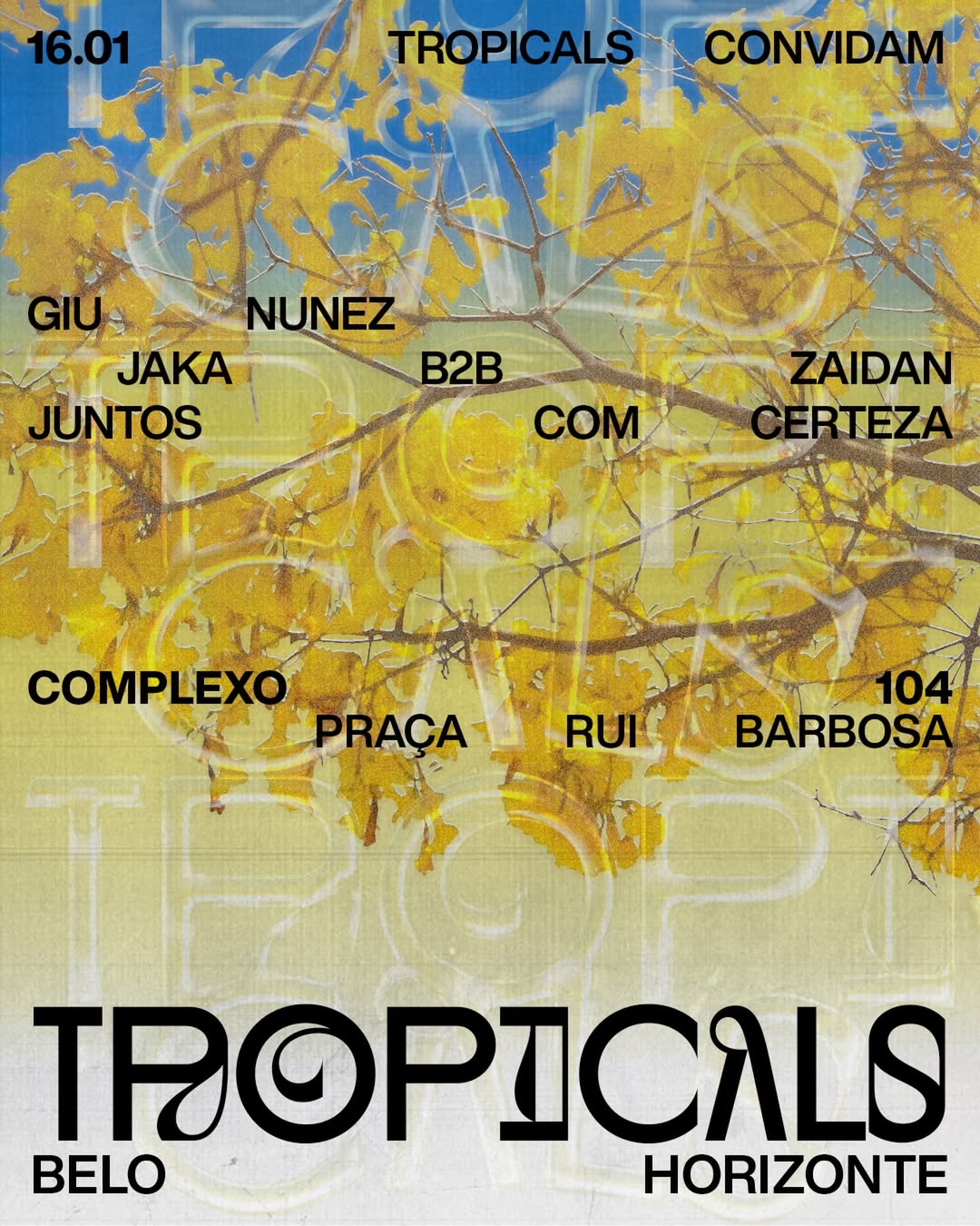 A Tropicals desembarca pela primeira vez em Belo Horizonte e chega com tudo ao Complexo CentoeQuatro, na Praça Rui Barbosa, para uma noite de estreia que promete ficar marcada. No dia 16 de janeiro, a partir das 22h, o público é convidado a viver essa primeira aventura em terras mineiras, em um encontro que celebra a diversidade, a pista e a descoberta sonora.