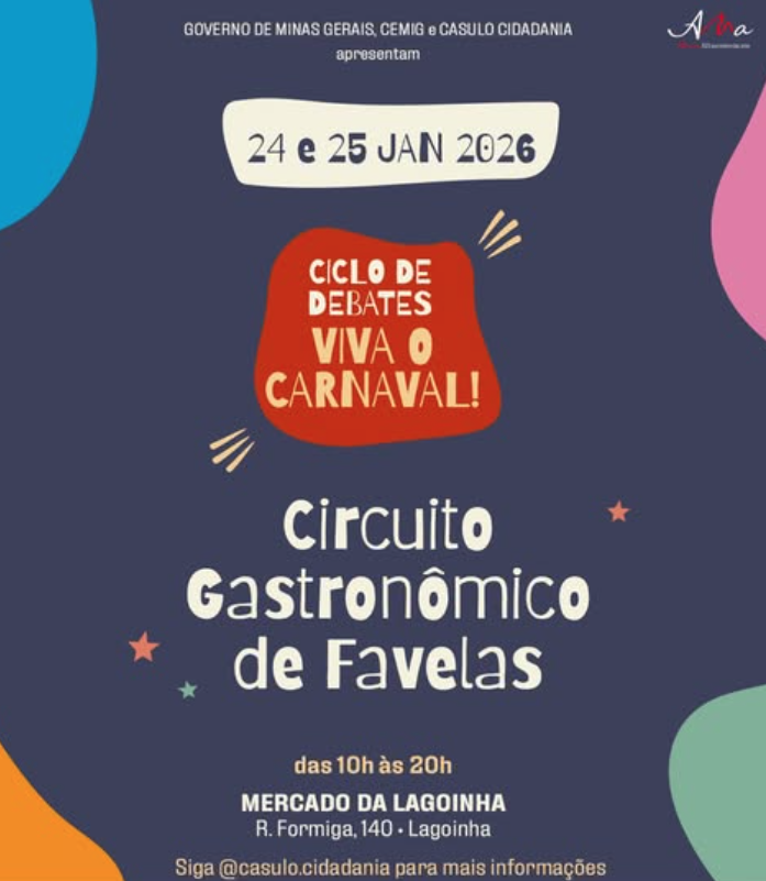 Paralelamente, o tradicional Circuito Gastronômico de Favelas traz sabores marcantes da culinária periférica, com pratos inspirados em receitas de família e releituras da cozinha mineira e quilombola. O evento também marca o encerramento das oficinas do projeto Oficinas e Circuito de Arte Digital, que conectou jovens periféricos à educação e à criatividade por meio da tecnologia.