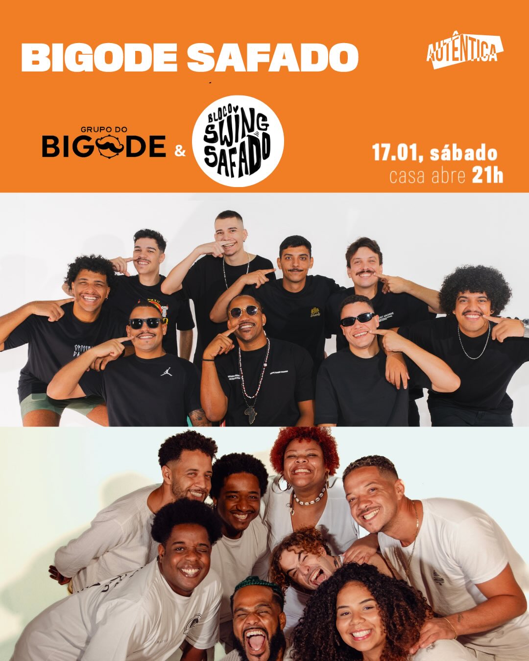 É o encontro do Grupo do Bigode, que já conquistou geral com aquele pagode diferenciado e o Bloco Swing Safado, que arrastou mais de 150 mil pessoas no último Carnaval. Uma mistura quente pra cantar, dançar e se acabar do começo ao fim. Aquele clima de verão e a energia que só o Bigode Safado tem.