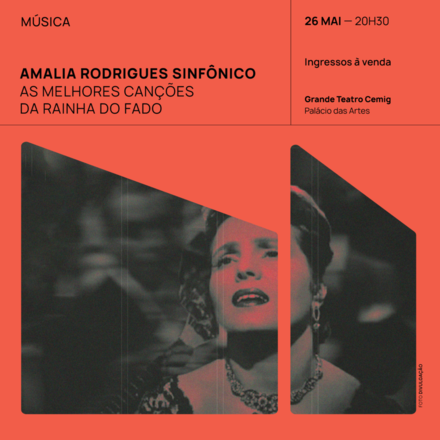 A turnê brasileira de “Amália Rodrigues Sinfônico” terá única apresentação em Belo Horizonte, no Grande Teatro Cemig Palácio das Artes, em 26 de maio de 2026, às 20h30.