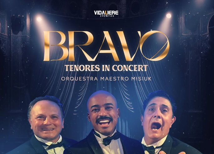 Um show inteiro com os maiores clássicos italianos em um palco com três tenores acompanhados de uma orquestra. É o que promete o espetáculo Bravo Tenores In Concert, com os renomados tenores Marcello Vannucci, Tenor Leone e CaJunior, acompanhados de uma orquestra com a regência do maestro Renato Misiuk.