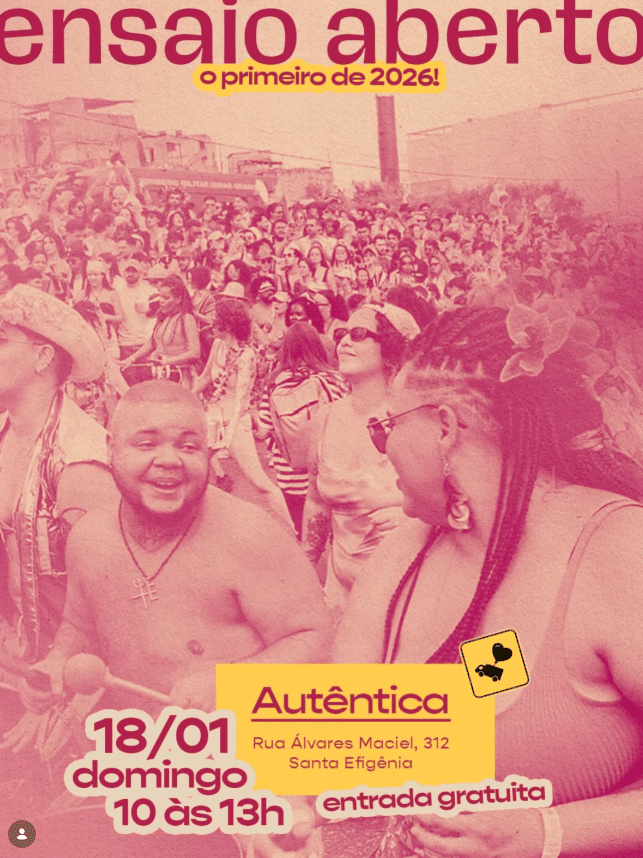 O ensaio marca o início da temporada de preparação para o Carnaval e convida o público a acompanhar de perto a construção do desfile do bloco na cidade, com a participação das alas e da bateria.