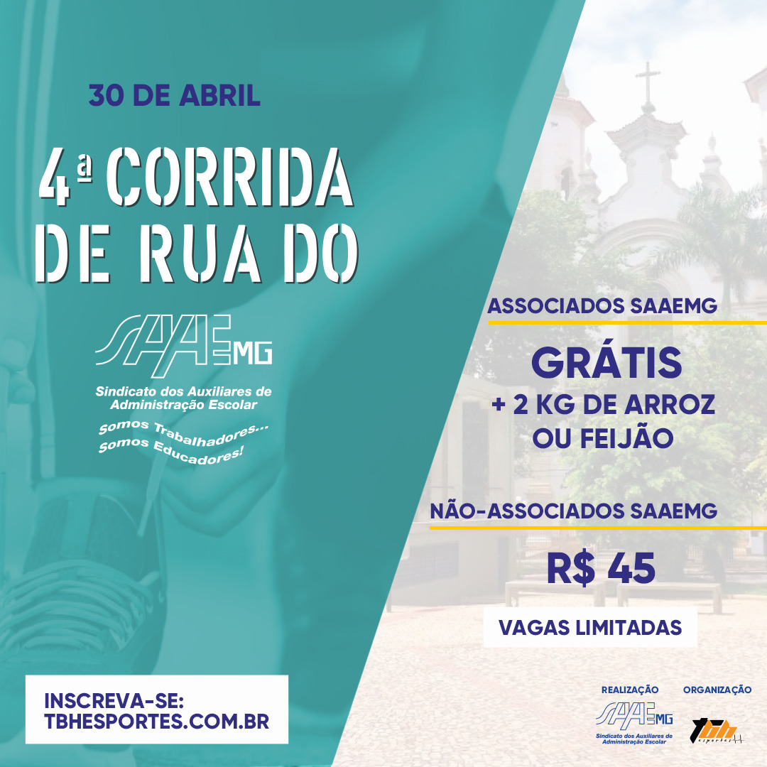 Os associados ao @saaemg tem a inscrição gratuita mediante doação de 2 (dois) kg de arroz ou de feijão.