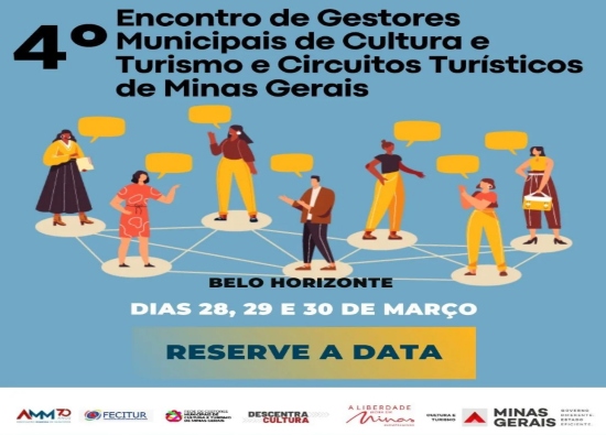No período de 28 a 30 de março de 2023, acontecerá em Belo Horizonte, no Palácio das Artes, o 4º Encontro de Gestores Municipais de Cultura e Turismo e Circuitos Turísticos.