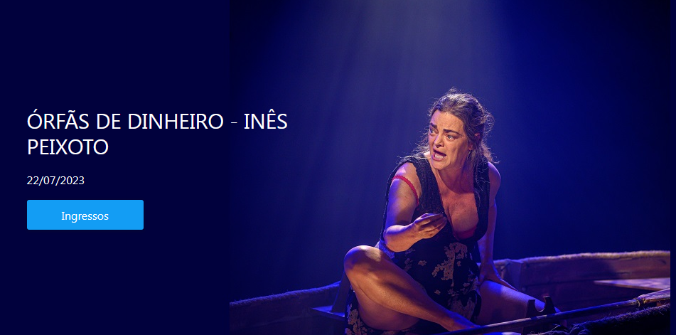 A atriz Inês Peixoto estará no palco do Teatro do Centro Cultural Unimed-BH Minas no dia 22/7, sábado, às 20h, com a única apresentação do espetáculo ‘Órfãs de dinheiro”, escrito e encenado por ela mesma e a direção é de Eduardo Moreira.