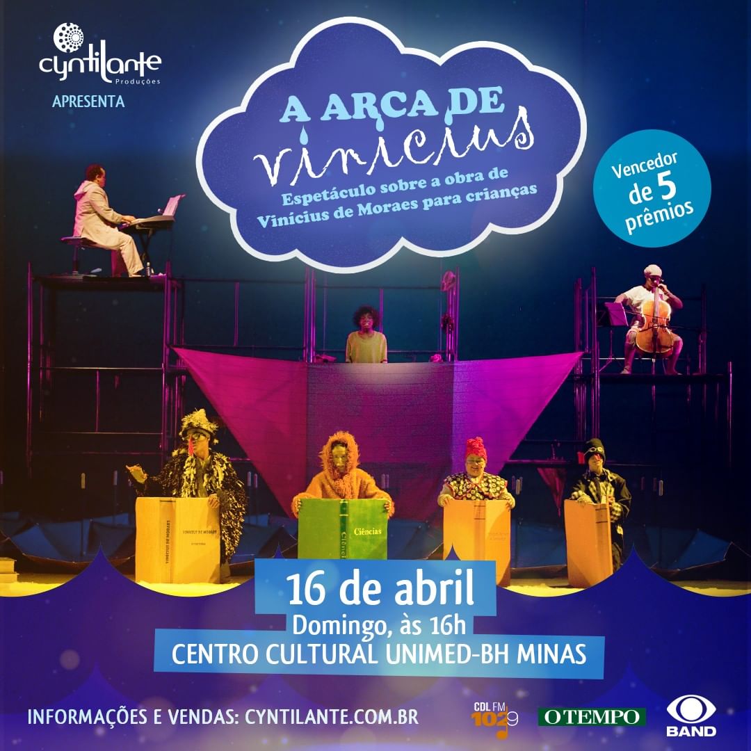 No dia 16/4, dmingo, às 16h, o Teatro do Centro Cultural Unimed-BH Minas e recebe o musical “A Arca de Vinícius”.